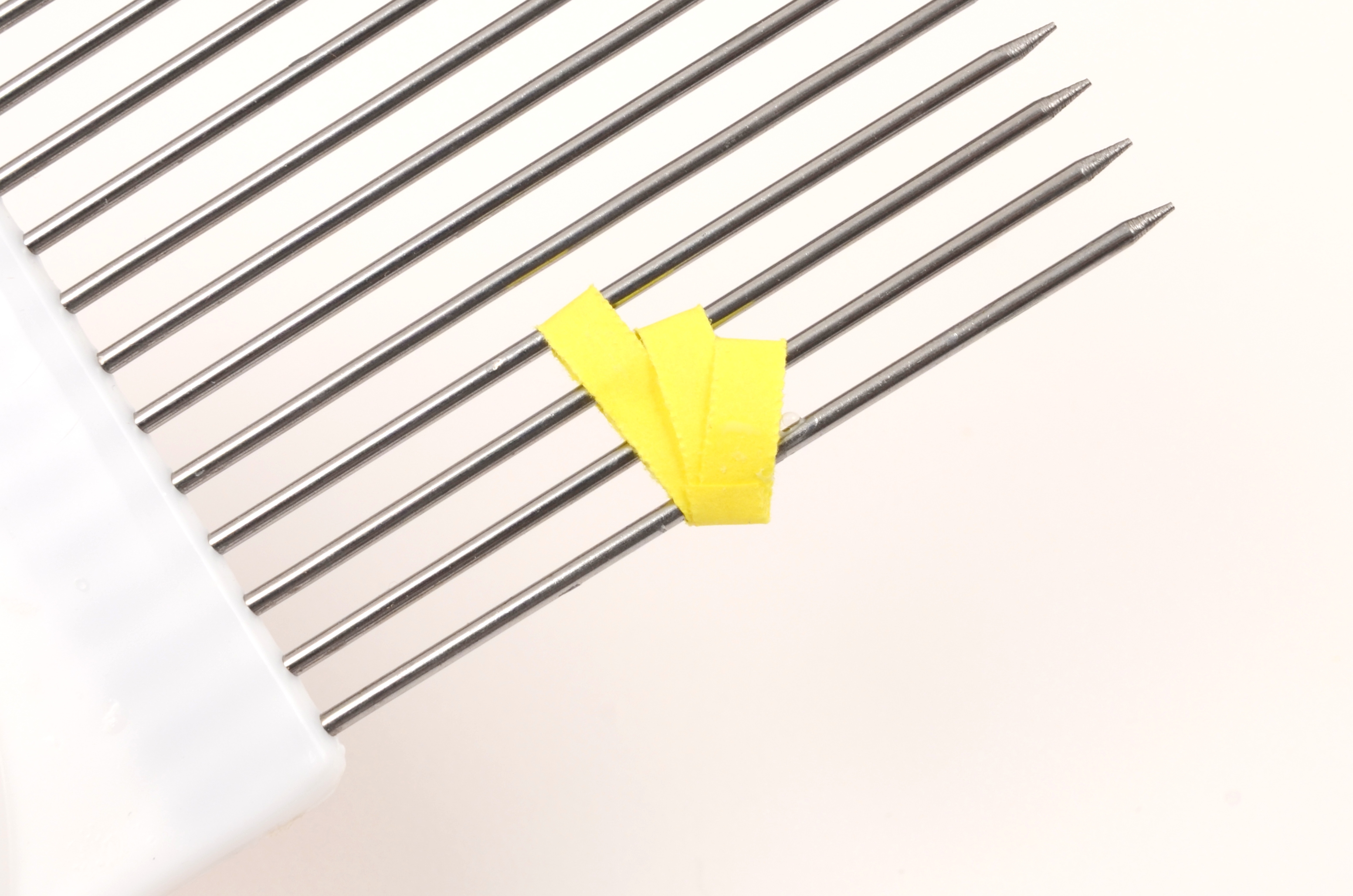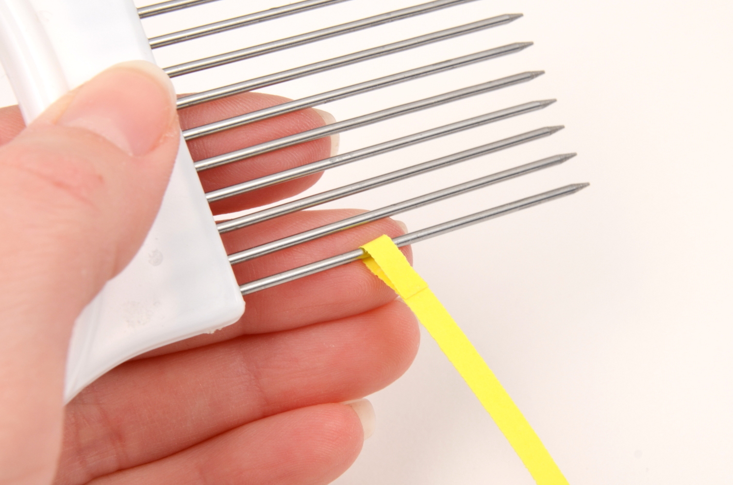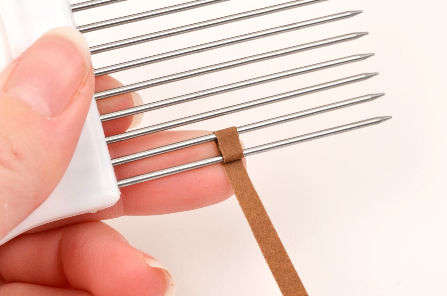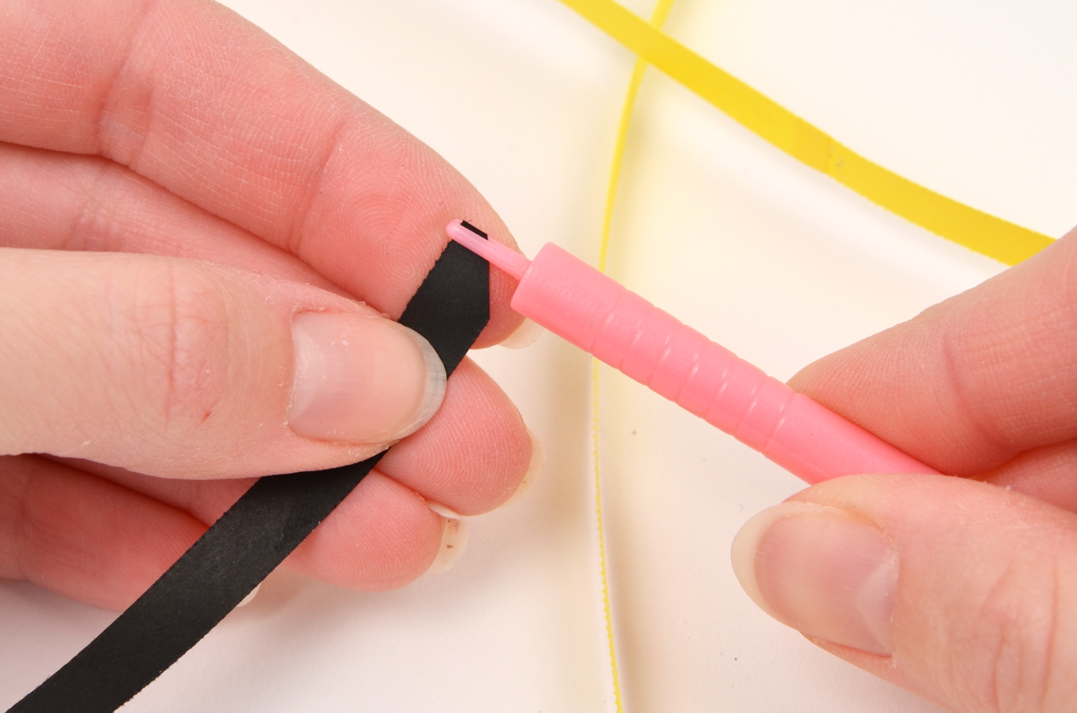 TIP: Aby se vám proužek lépe udržel v zářezu kolíku, můžete začátek proužku šikmo sestřihnout.