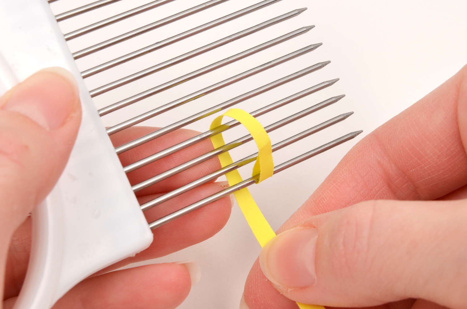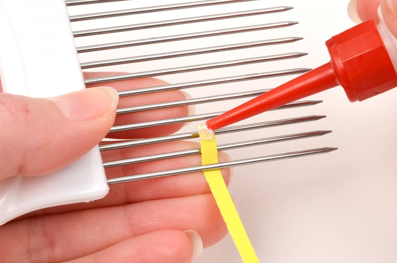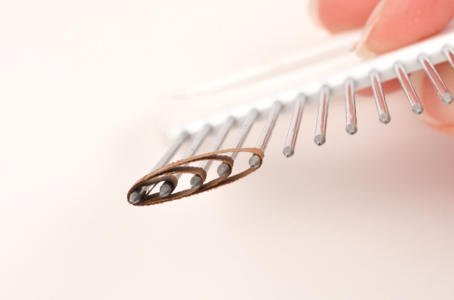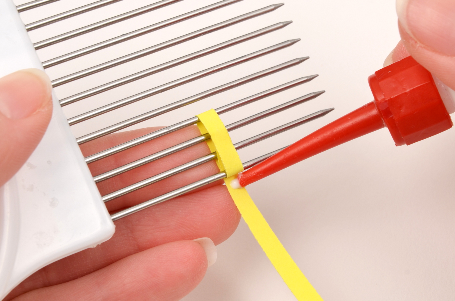 TIP: Aby se vám proužek lépe udržel v zářezu kolíku, můžete začátek proužku šikmo sestřihnout.
